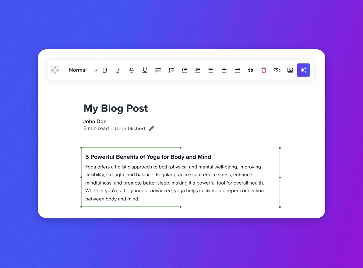 Vagaro’s AI takes care of the heavy lifting for your content strategy while you focus on running your business. Generate engaging, keyword-rich blogs tailored to your business, designed to boost website traffic and improve your search rankings.