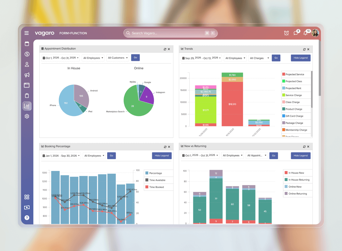 Power your front desk with Vagaro's fitness-focused POS system. Sell class packs and memberships while checking members in. Every transaction syncs with your calendar and reports.
