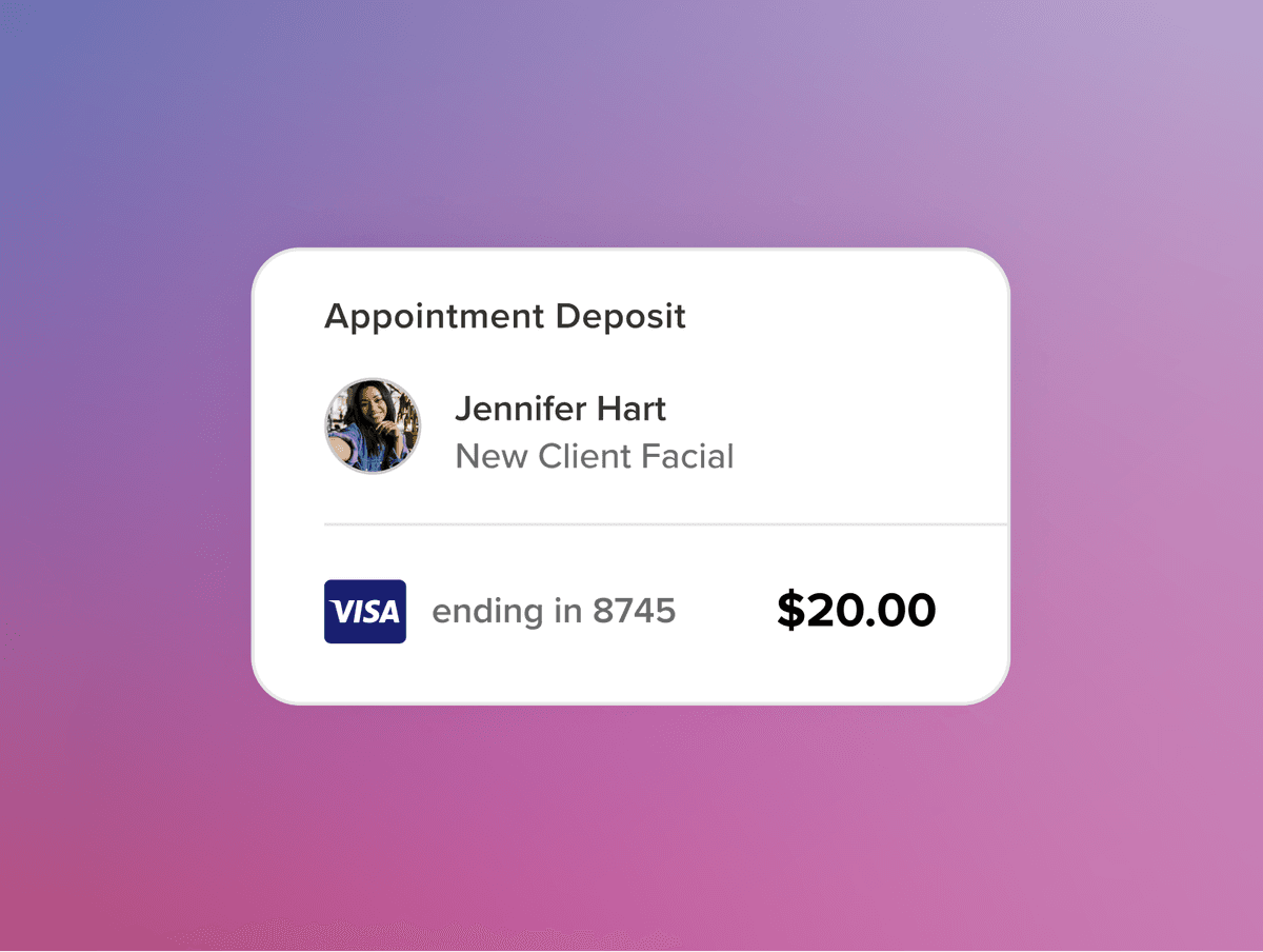 Accept payments right through the marketplace, save cards securely on file, and require deposits to protect your time and reduce no-shows.