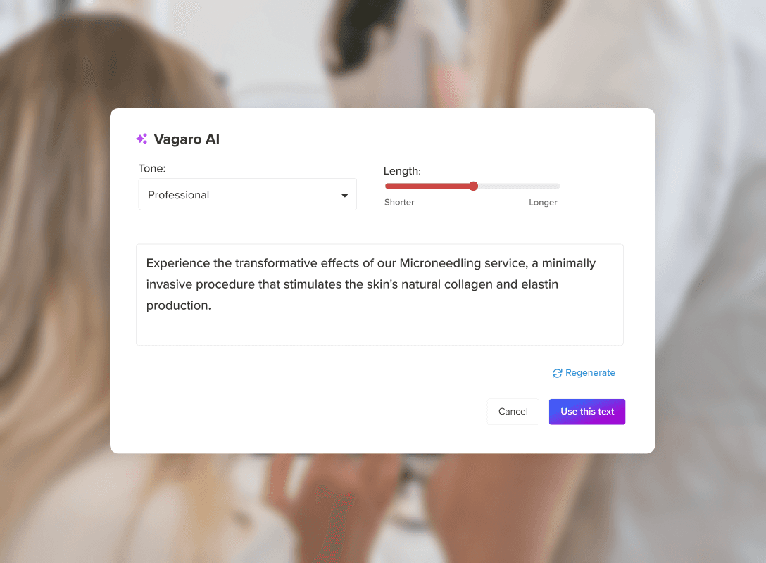 Vagaro’s intelligent marketing tools help med spas reach the right audience with precision. Built-in AI and advanced filtering make it easy to deliver personalised emails, texts, and promotions that drive results.