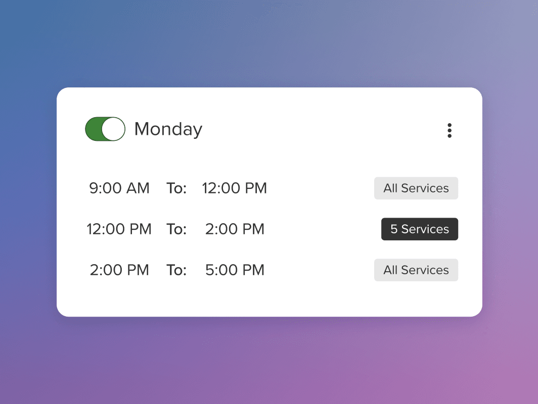 Take full control of how clients book with flexible settings tailored to your business. Enable waitlists, add lead times, set custom service hours, and decide whether to auto-accept appointments or require approval.