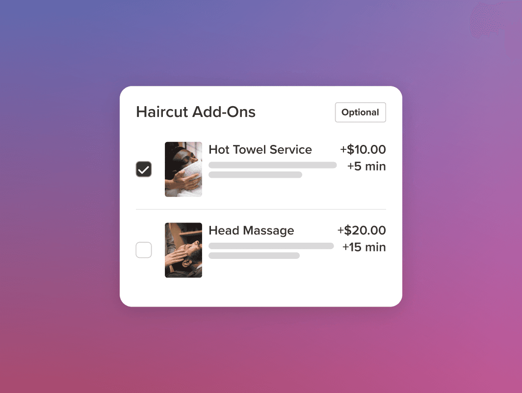 Offer a seamless client experience by automating service add-ons—prompting customers to enhance their bookings without any extra work from you.