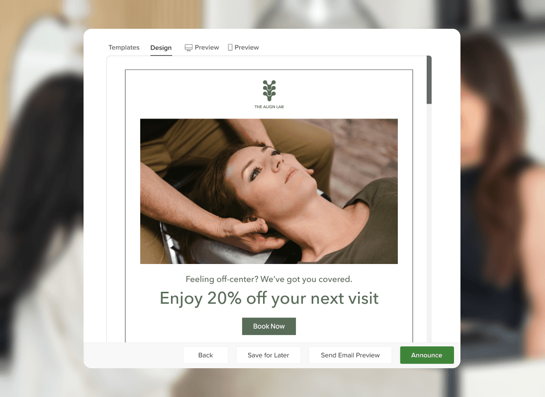 Stay connected between visits with personalized emails and texts that remind patients to rebook and stay consistent with their care. Use Vagaro’s built-in marketing tools to share wellness tips, announce promotions, and encourage reviews that help your chiropractic practice grow.