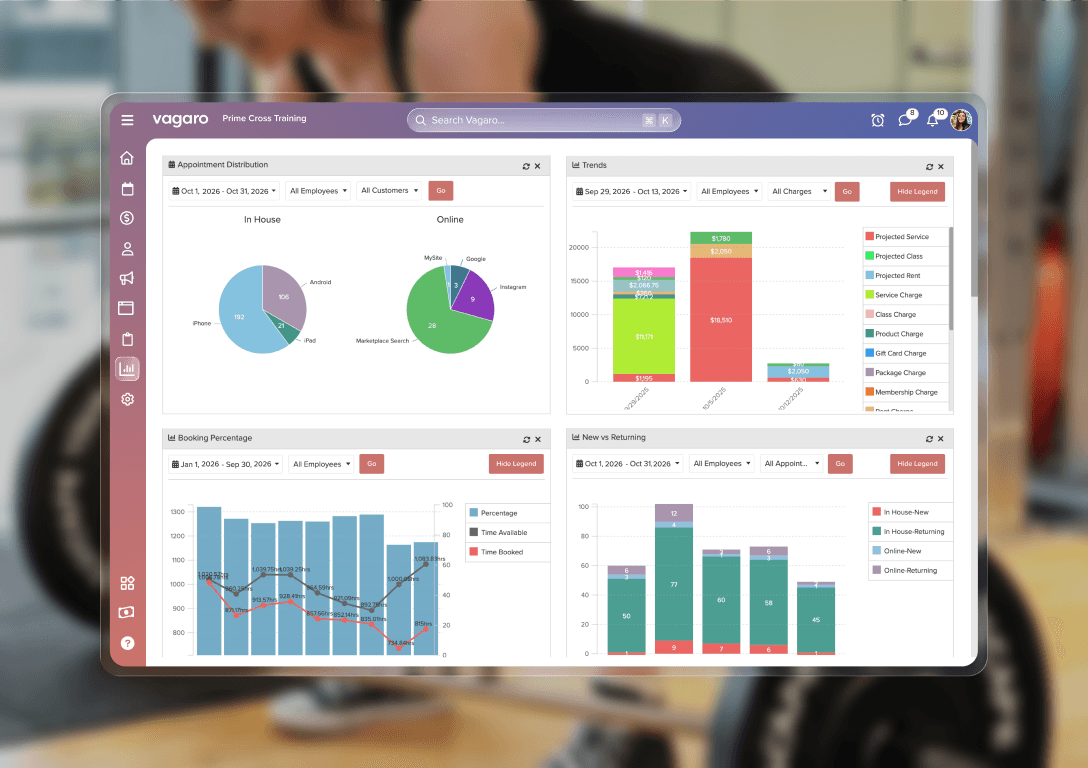 Power your cross-training studio with tools to schedule classes, manage athletes and memberships, process payments, and build a stronger training community—all in Vagaro.