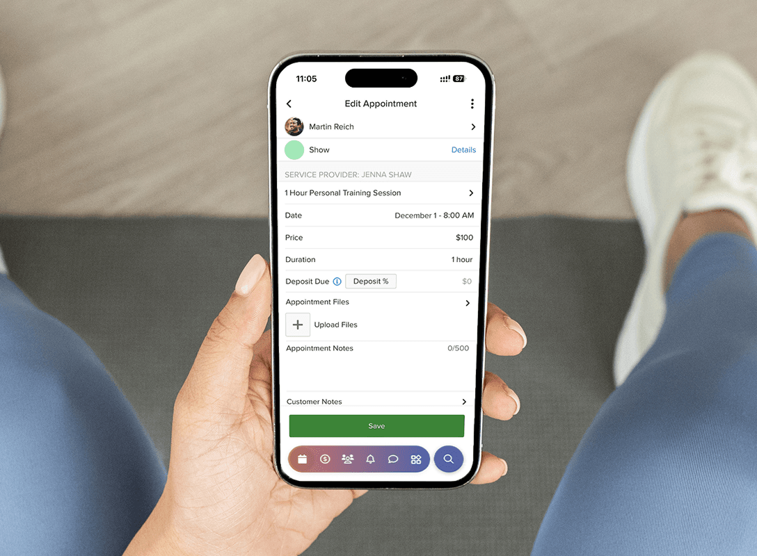 Give trainers instant access to schedules, client lists, and progress tracking through the Vagaro Pro App.