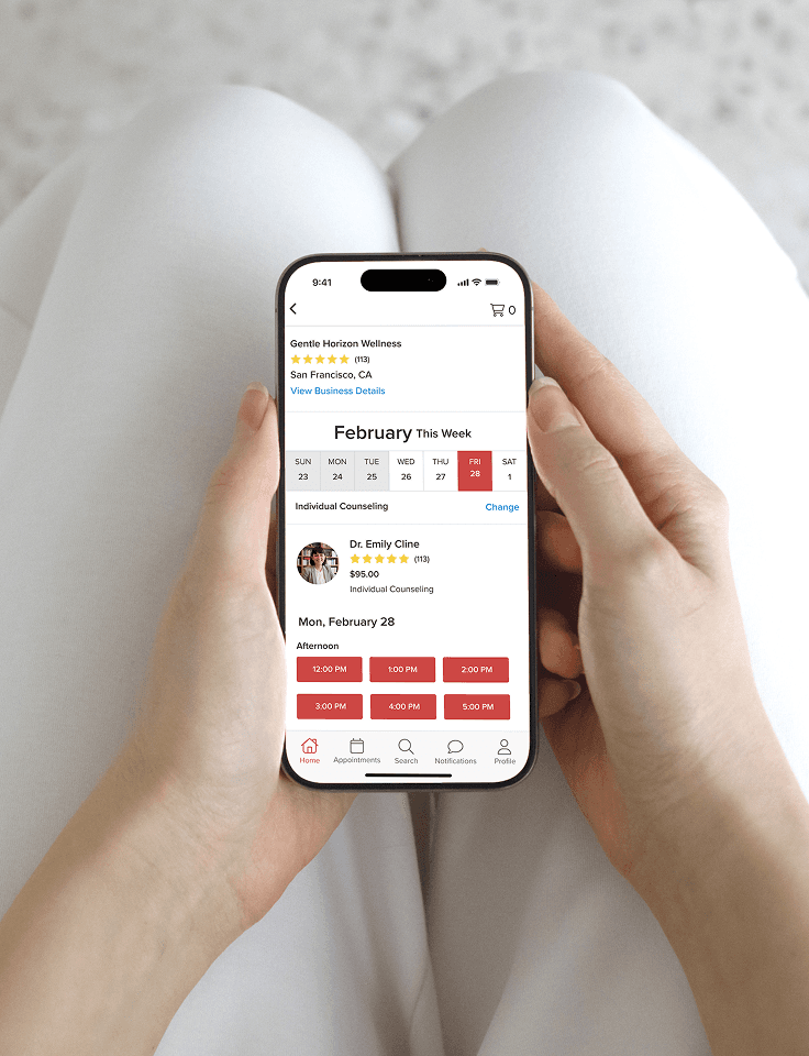 Empower clients to book appointments when it's convenient for them, supporting consistent engagement with their mental health care