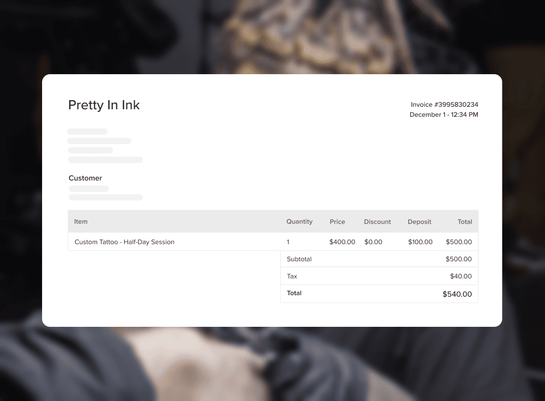 Vagaro’s tattoo booking software protects your time with the ability to require deposits when clients are locking in a session.