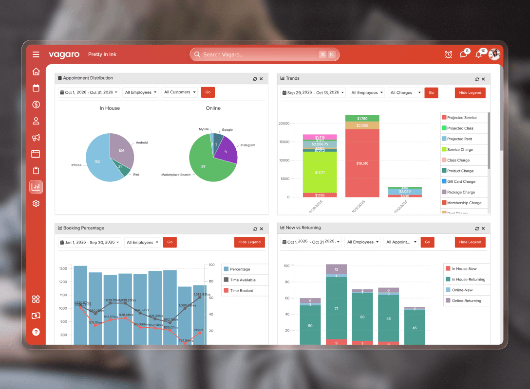 Vagaro has every report you need to keep your fingers on the pulse of your studio. See what’s working, what isn’t, and how you can move forward.