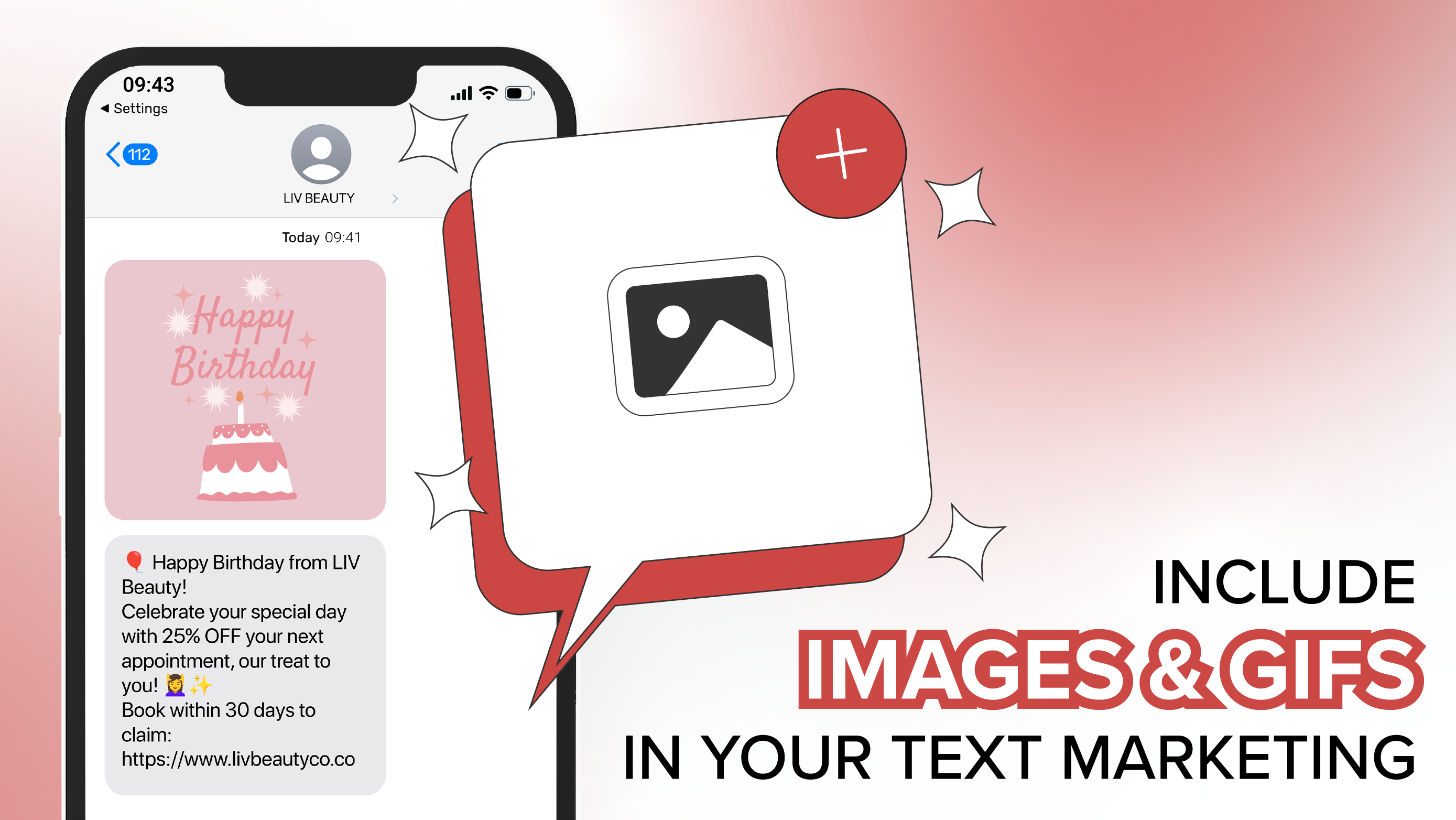 Vagaro’s Text Marketing feature just got a powerful upgrade! You can now send messages with images or GIFs, helping you stand out in a crowded inbox and connect with clients in a more eye-catching way. If you add an image or GIF, you can now send up to 1,600 characters in a single message, giving you plenty of room to say exactly what you need.